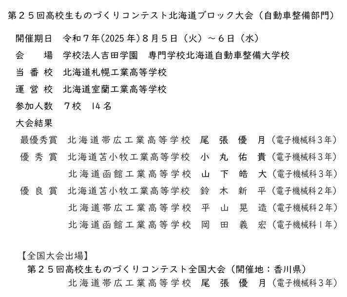 北海道工業高等学校長会・北海道高等学校工業クラブ連盟