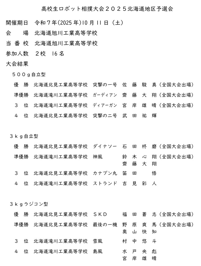 高校生ロボット相撲大会2024 結果